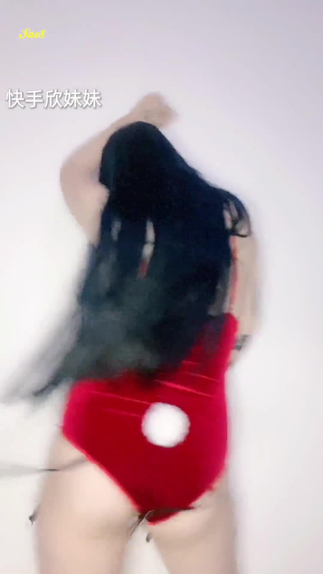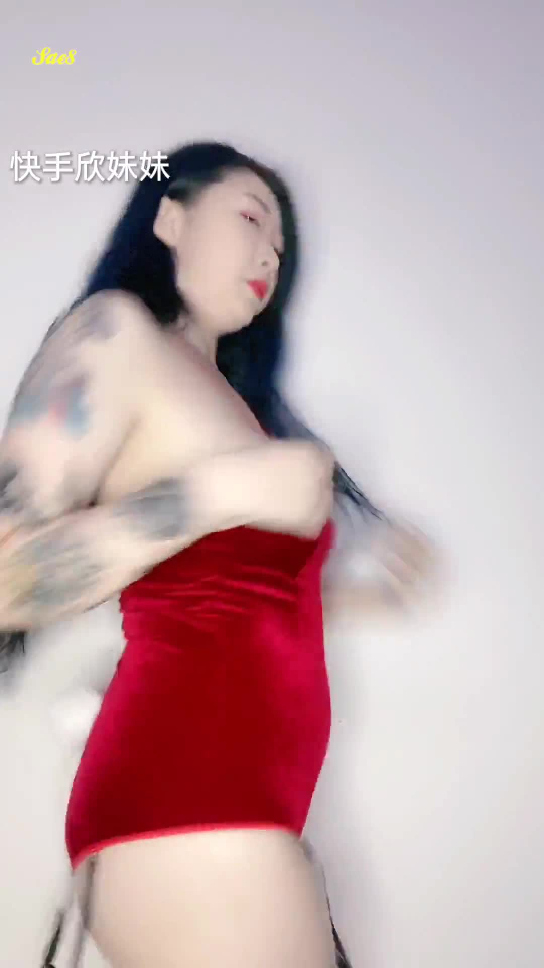 欣妹红裙抖奶舞