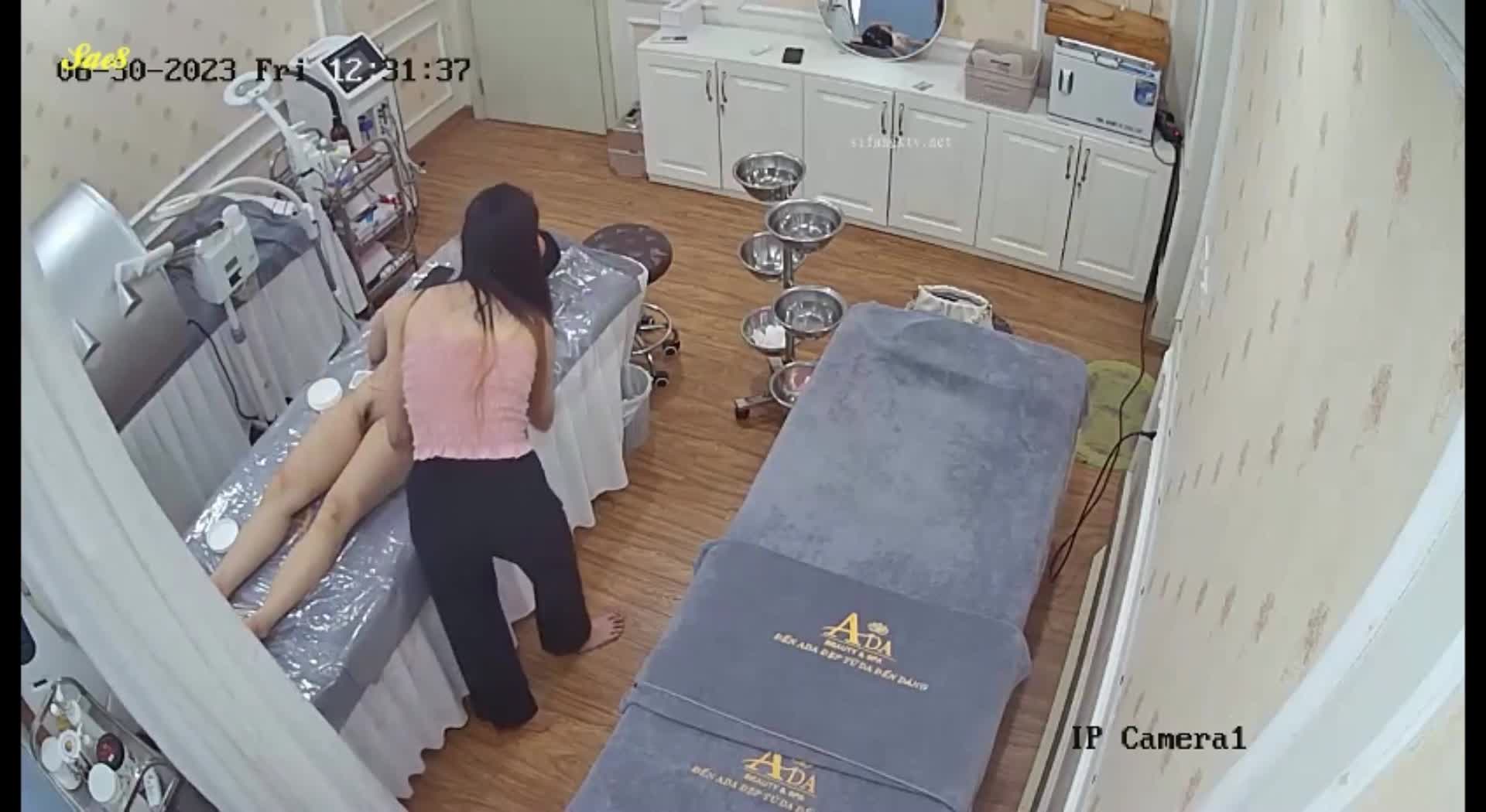 黑客破解美容院监控偷拍气质少妇做SPA纤体美容