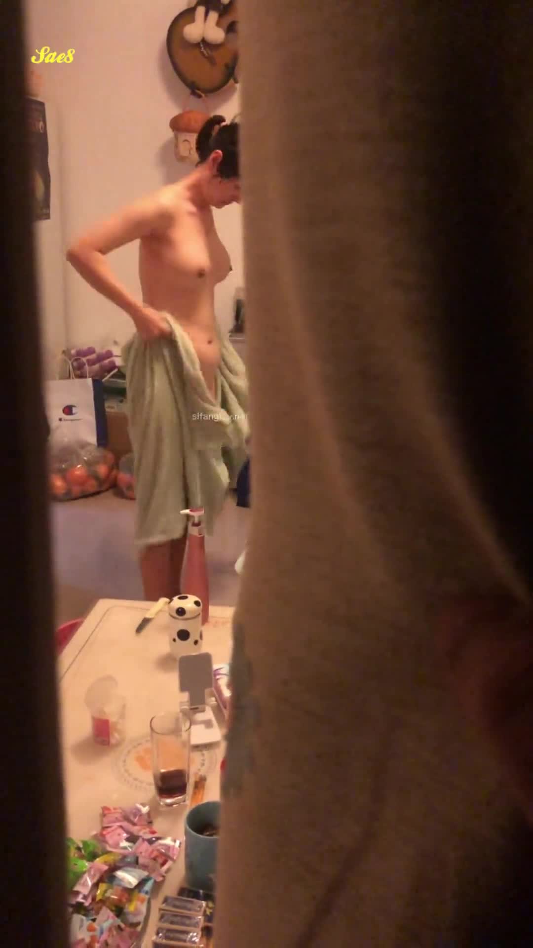 去表哥家串门偷窥表嫂刚洗完澡换衣服。