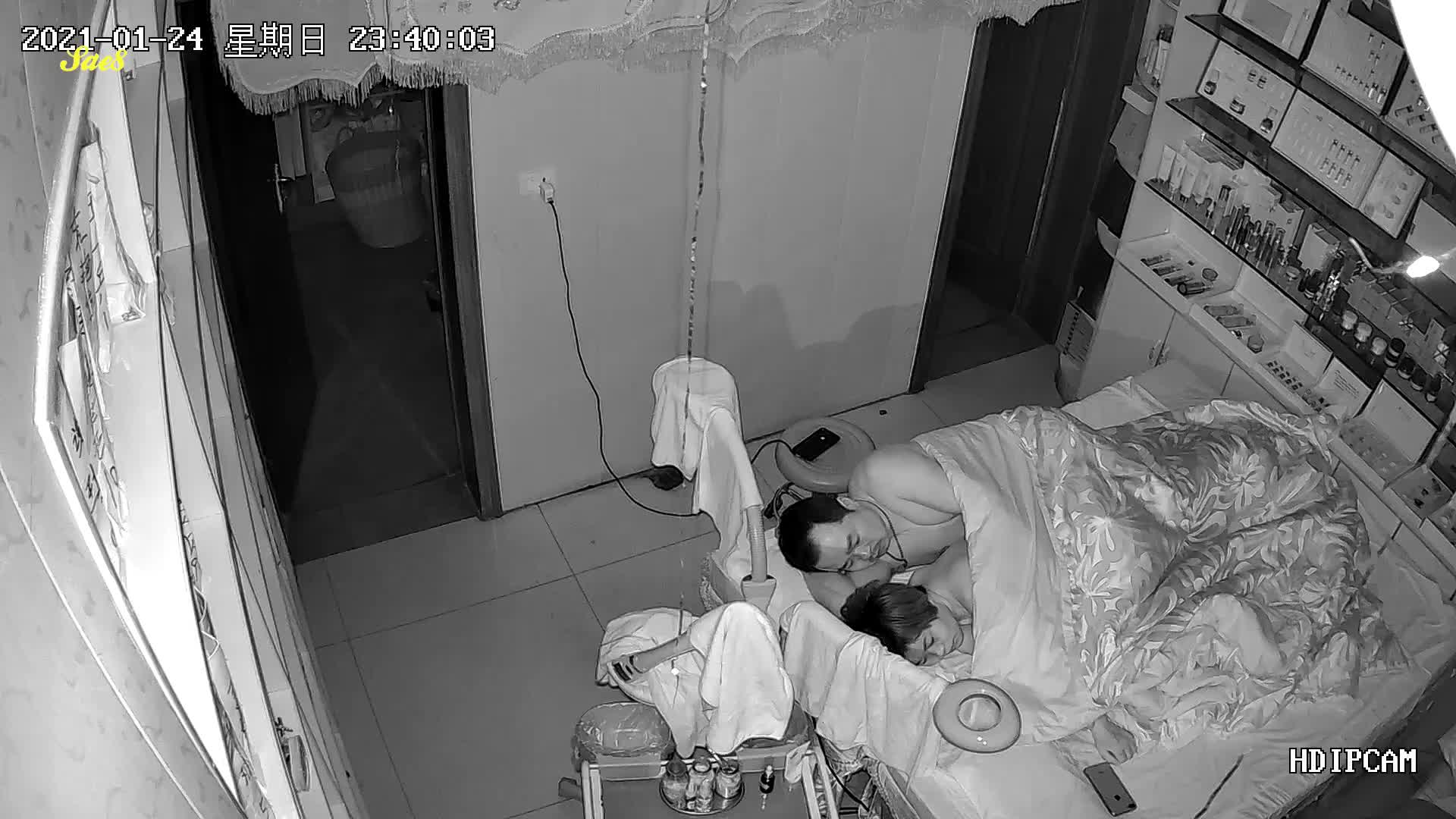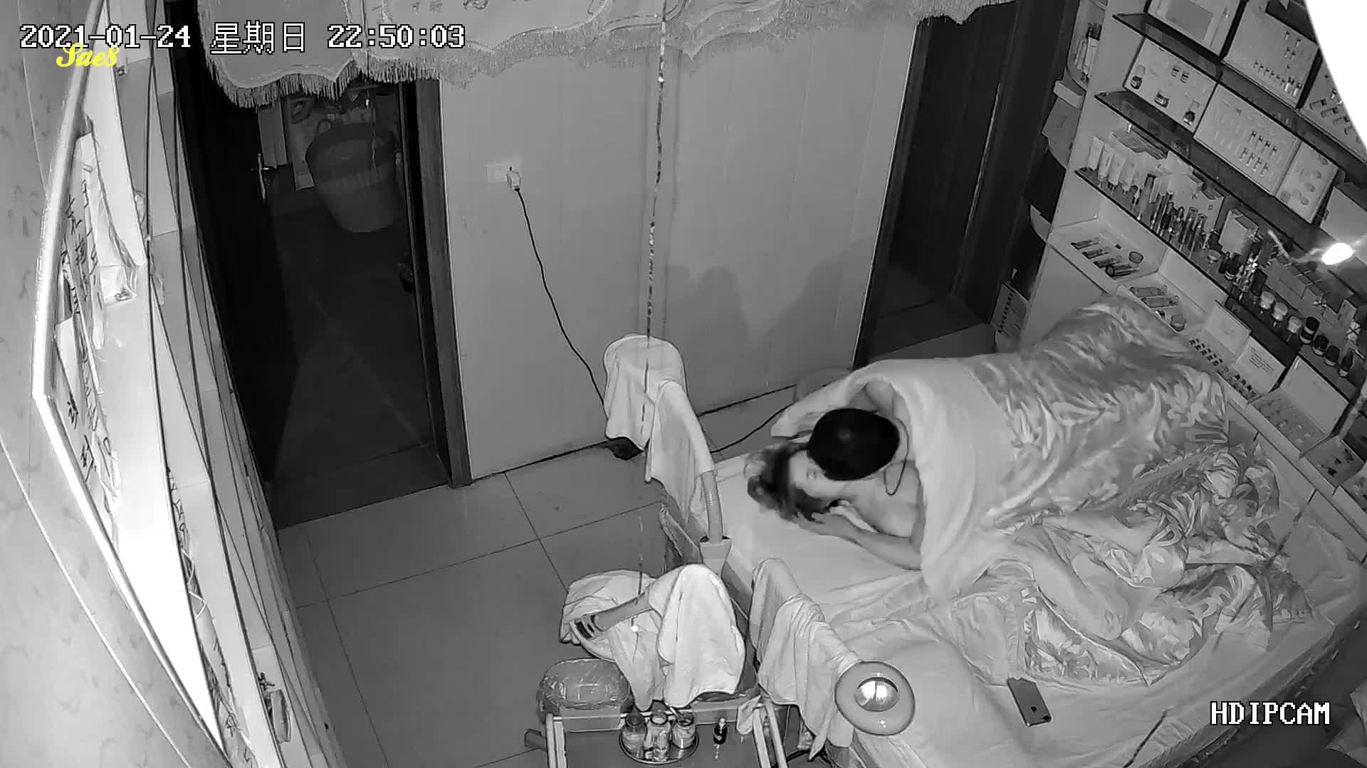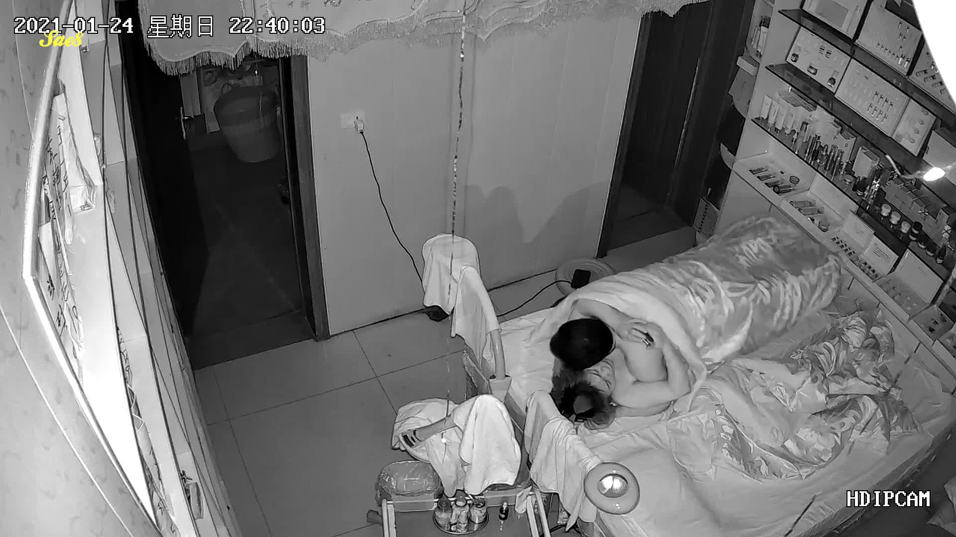 摄像头入侵美容院老板娘按摩床上过夫妻生活